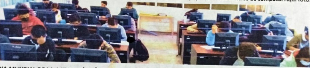 Por instrucción de la autoridad educativa federal, todos los planteles de Bachillerato aplicaron este examen que pretende conocer si el estudiantado domina los aprendizajes esenciales en Lenjuage; Comunicacion y Matematicas. Todos los alumnos de 6° semestre la realizaron los dias 5 y 6/abril en los centros de cómputo. Aqui foto: