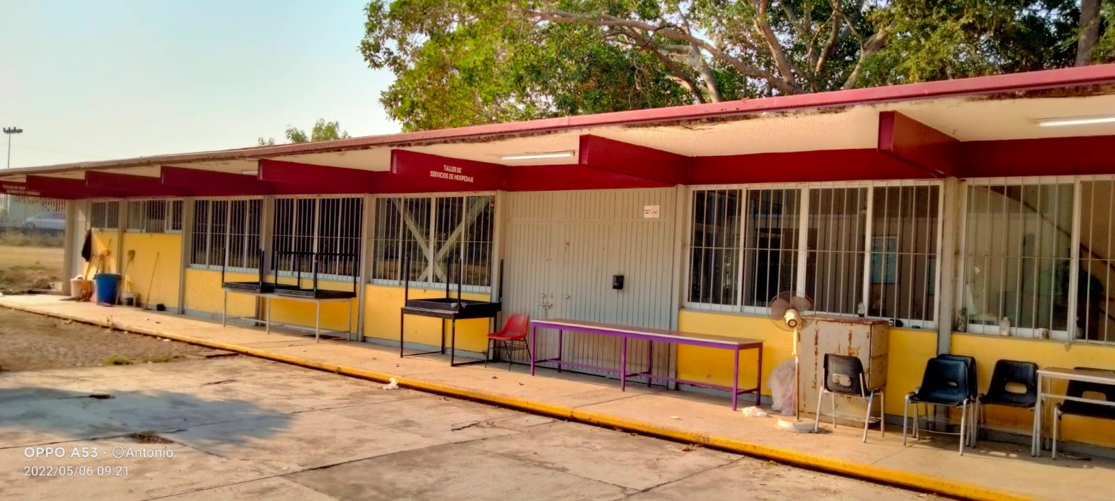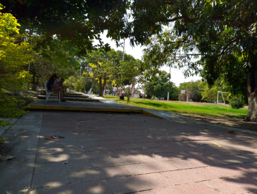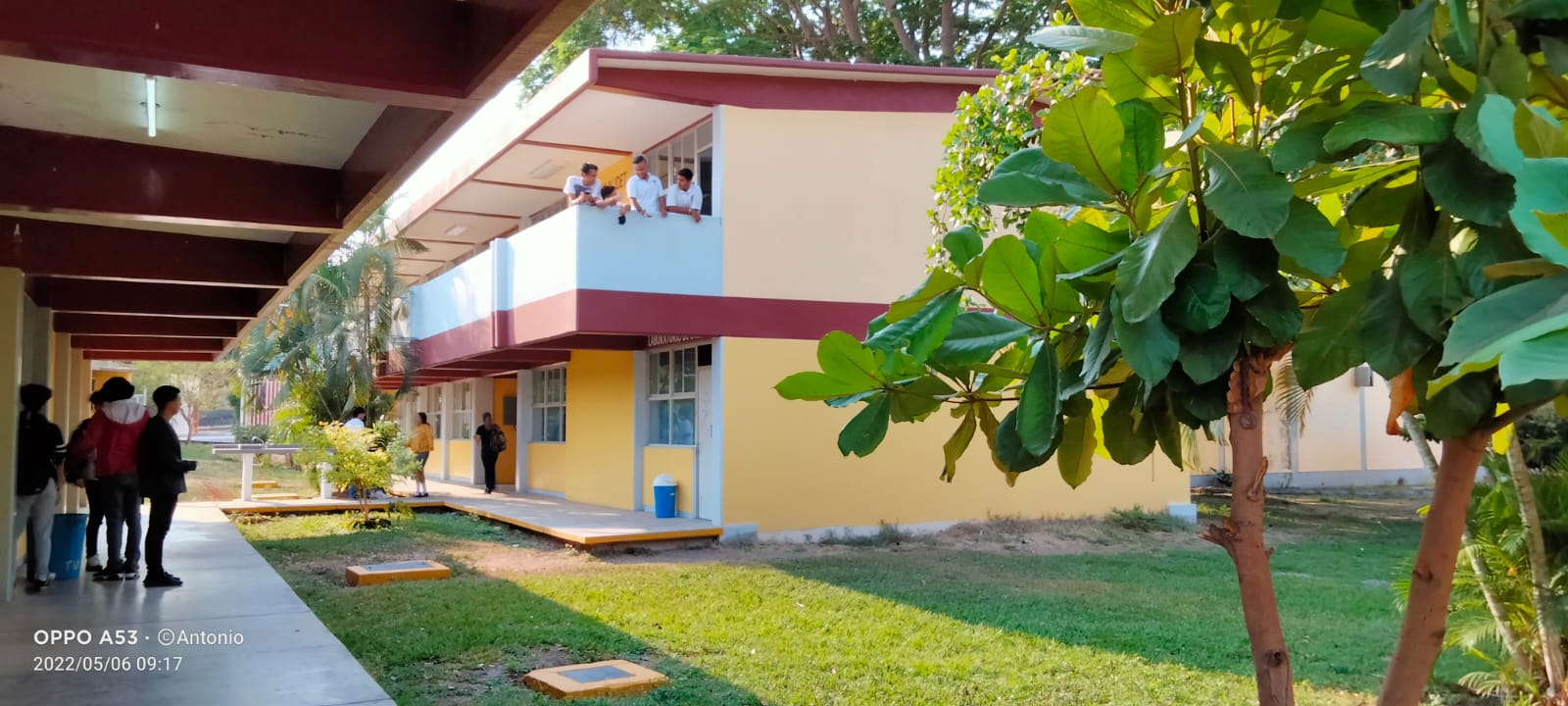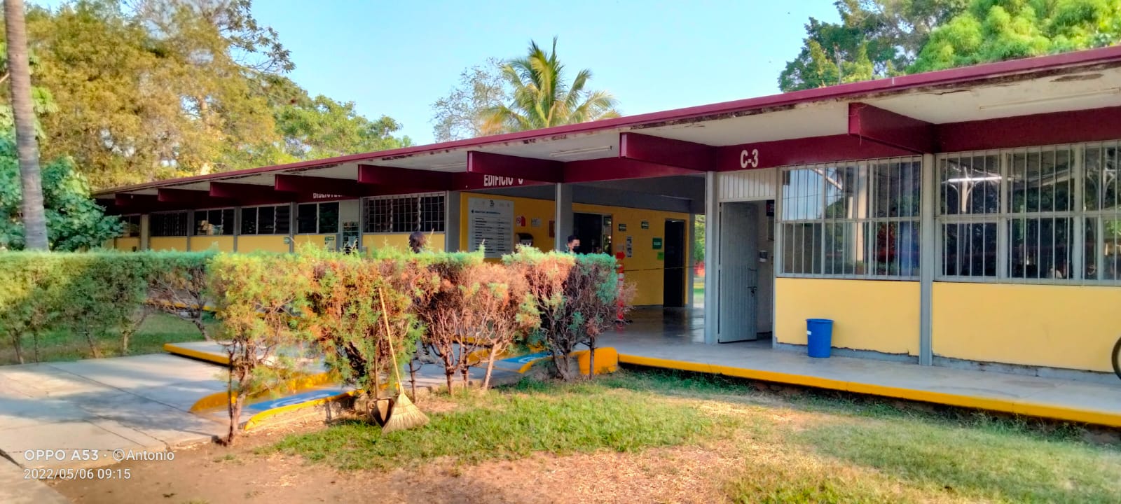 En el centro se encuentra la cancha principal donde tambien se hacen ceremonias y eventos. Por el pasillo uno llega a las canchas de Futbol, Basquetbol y Voleybol donde al otro lado es visible el estacionamiento de los docentes.